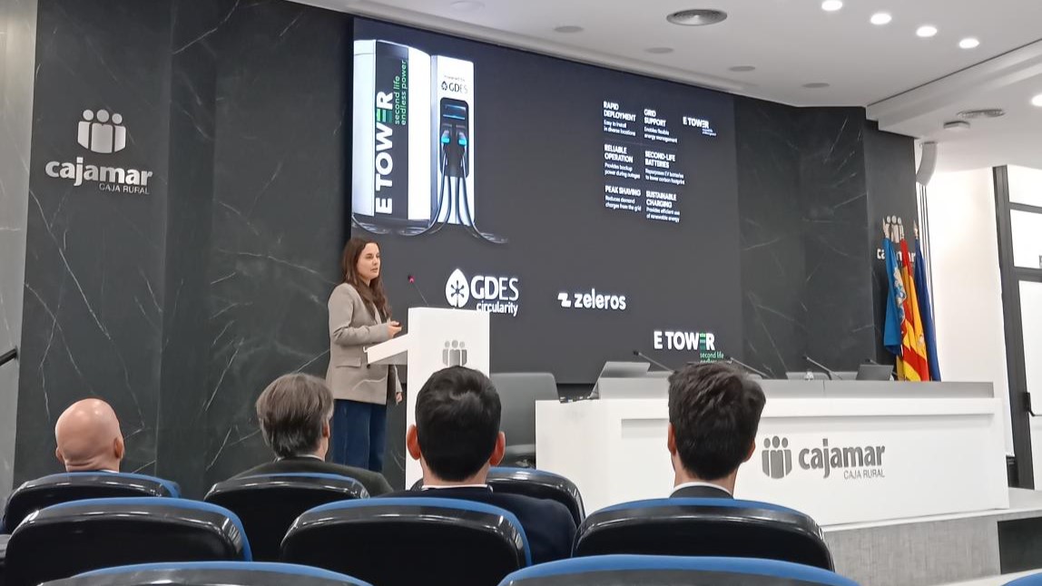 En este marco, Lorena Hernández, técnica de proyecto en GDES Circularity, presentó en la sesión de pitches la propuesta de valor de GDES en movilidad sostenible: E TOWER®, un sistema de recarga para vehículos eléctricos que responde a dos grandes desafíos del sector: